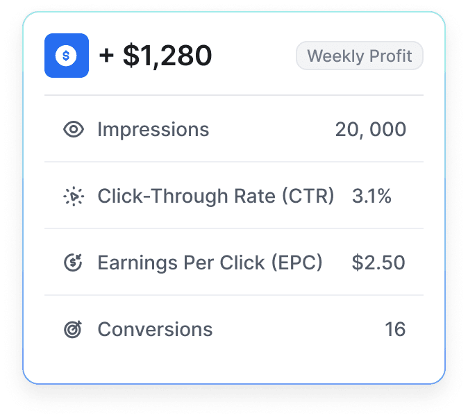 Earn big through targeted affiliate offers and campaigns, including video ads, banner ads, and strategic placements.
