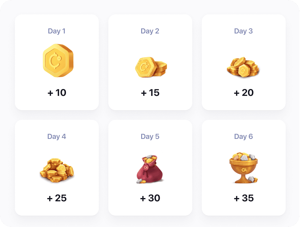 Reward user loyalty with daily bonuses that grow the longer they stay active.